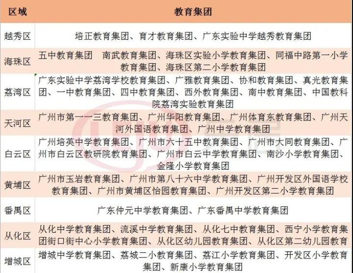 区属教育集团方面,广州也接连发力。
