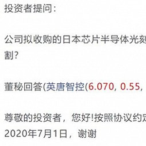投资者的一个”碰瓷”式的问题,让英唐智控(300131.SZ)阴差阳错成了A股的“光刻机第一股”。