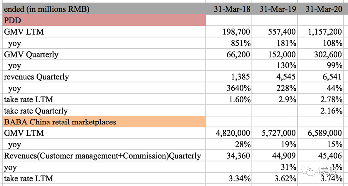 当然,正如第一部分所分析的那样,如果没有拼多多疫情期间战略上对商家的帮扶,这个季度是不可能取得GMV 99%的同比增速,更不可能有我们后续关于take rate反算,推测得到的结果。