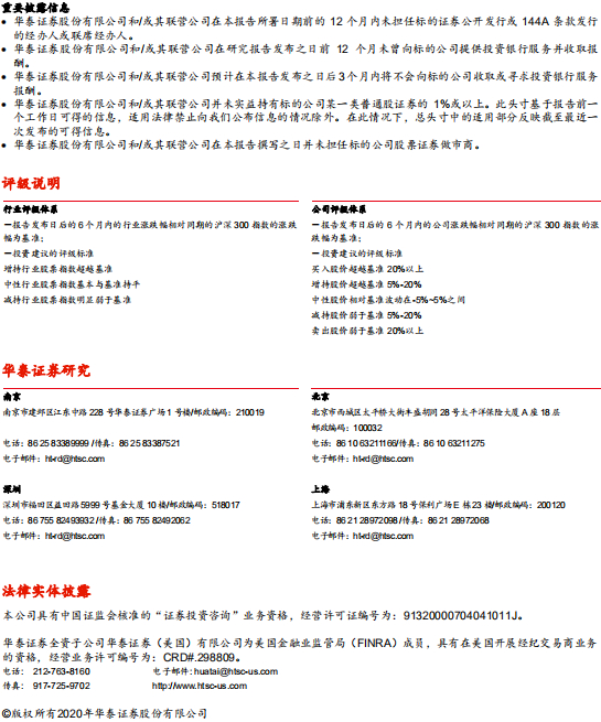 在任何情况下,本公众号中的信息或所表述的意见均不构成对客户私人投资建议。订阅人不应单独依靠本订阅号中的信息而取代自身独立的判断,应自主做出投资决策并自行承担投资风险。普通投资者若使用本资料,有可能会因缺乏解读服务而对内容产生理解上的歧义,进而造成投资损失。对依据或者使用本公众号内容所造成的一切后果,华泰证券及作者均不承担任何法律责任。