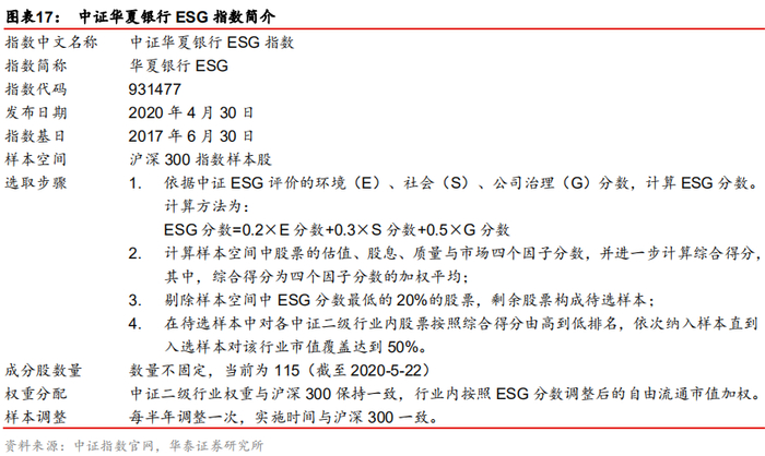 ESG120策略、华夏银行ESG使用ESG负面筛选,同时与因子选股结合