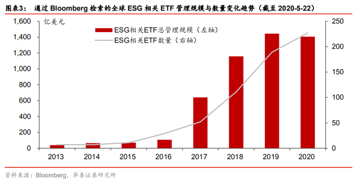 全球ESG投资在UNPRI推动下逐渐兴起,相关ETF产品规模增长较快