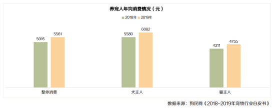 更为关键的是,单只宠物年消费金额持续上涨,2019年已达5561元,同比2018年增长545元,增幅10.9%。也就是说,单只宠物平均每月消费金额达到463元。