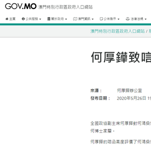 【环球网报道】港澳知名爱国企业家何鸿燊今天(26日)在香港养和医院逝世,澳门特区政府网站26日发布消息称,澳门特区前行政长官、全国政协副主席何厚铧对何鸿燊博士不幸辞世,深感哀痛,于5月26日致唁函慰问何博士家属。何厚铧的唁函高度评价了何鸿燊博士的一生,并请家属节哀保重。