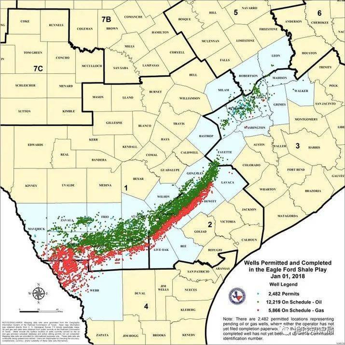 规模巨大的页岩油气产区真是德克萨斯能源的救星(图片来自:https://eaglefordshale.com/)