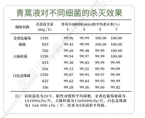 青蒿提取物中有效成分青蒿素,对金黄色葡萄球菌、大肠杆菌、白色念珠菌的杀灭效果非常好。