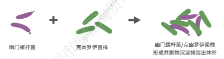 克幽罗伊氏菌株,能够精准特异性捕获幽门螺旋杆菌。当我们刷牙时,两种菌形成共聚物沉淀就会从口腔表面脱落,从而排出人体,降低幽门螺旋杆菌的数量。