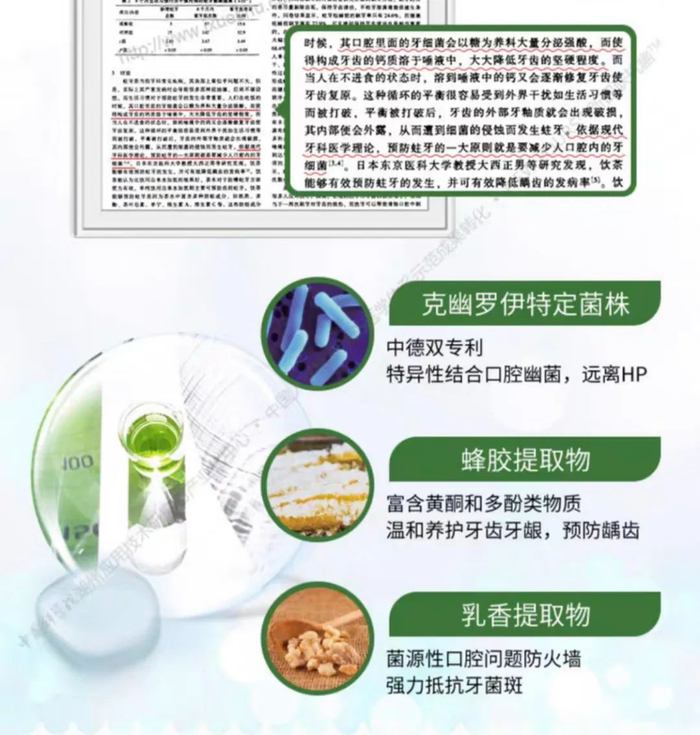 √中国和德国双专利配方,专门对付幽门螺旋杆菌,清新口气效果好