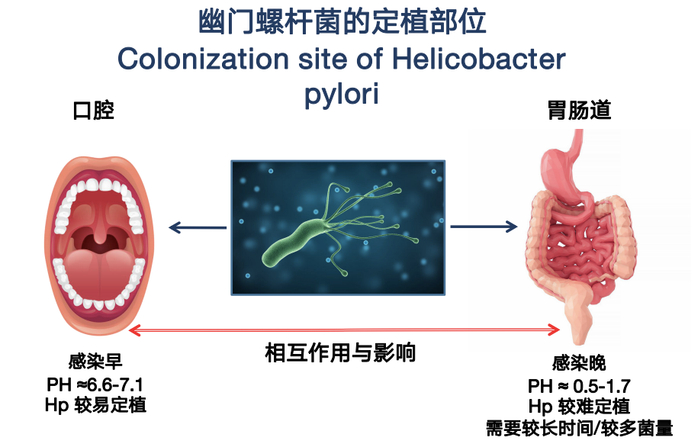 幽门螺旋杆菌感染主要在口腔和胃部两个部位。