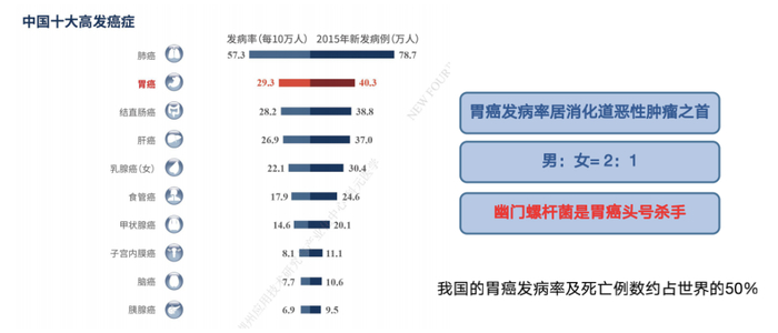 还是公认的胃癌极其严重的危险因素,在我国的胃癌发病率及死亡率约占世界的 50%。