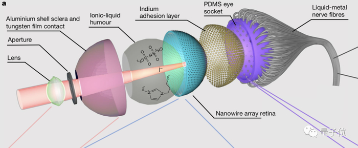EC-EYE的外观和内部都和人眼高度相似,同样具有透镜(晶状体)、离子液(玻璃体)、感光阵列(视网膜)、导线(视神经)等关键结构。