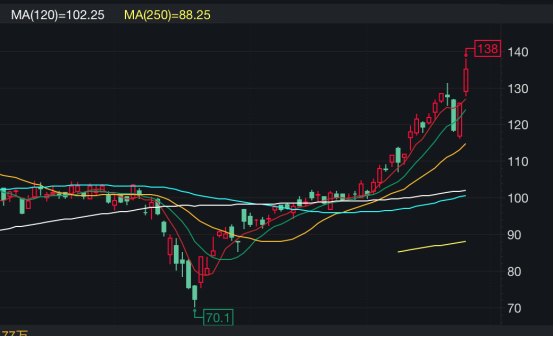 二级市场上,美团一扫疫情阴影,最近两个月保持向上走势。截至5月25日收盘,美团涨6.16%,总市值一日涨425.37亿港元至7330.03亿港元,今日开盘美团继续大涨,盘中一度大涨9.7%,再创上市新高价138港元,市值突破8000亿港元,成为国内第三家市值跨过1000亿美元门槛的互联网公司。