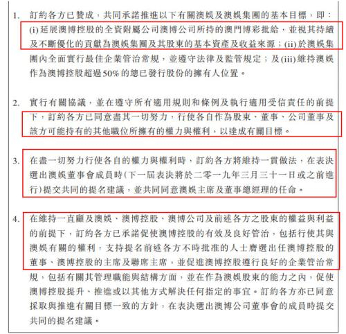 也即,这次签署协议的二房、霍氏联盟持有逾53%澳娱股份,澳娱又持有54.1%澳博控股,澳博控股持有90%澳门博彩股份有限公司股权,层层垂直控股下,联盟间接持有拥有赌牌澳门博彩股份有限公司的话语权。
