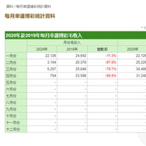 不过,由于受到疫情严重冲击,澳门博彩收入大幅下滑。根据澳门特区博彩监察协调局最新公布的每月幸运博彩统计数据显示,截至2020年4月底,澳门幸运博彩毛收入为7.54亿澳门元,同比暴跌96.8%,去年同期博彩收入235.88亿澳门元。