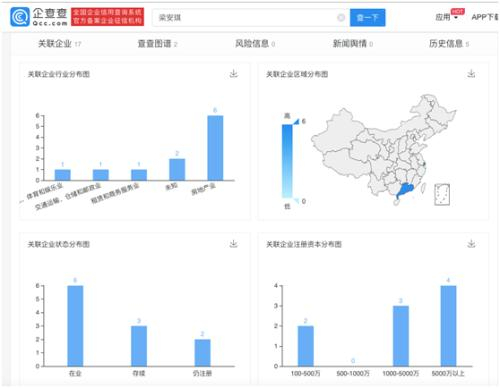 企查查数据显示:何鸿燊名下共有12家企业,其妻子梁安琪担任6家企业法定代表人。