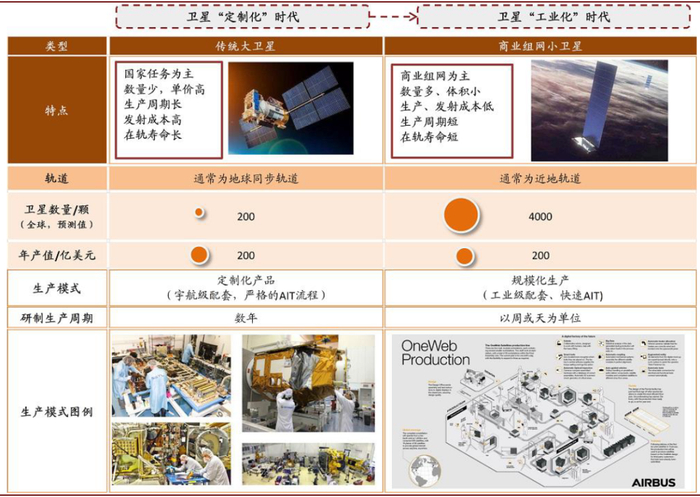 图表: 在技术和需求快速增长的推动下,卫星有望从“定制化”走向“工业化”生产