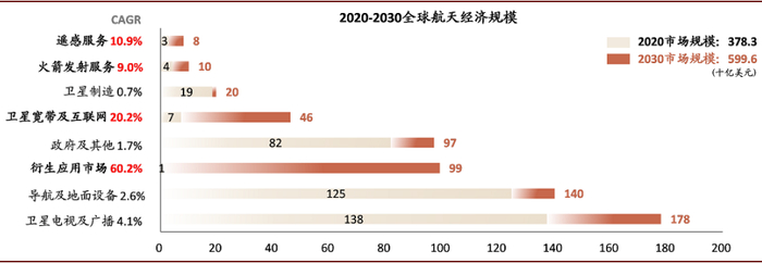 图表: Statista预测全球航天经济到2030年接近6,000亿美元