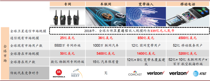 图表: 卫星互联网面向通信市场的四大细分领域的商业机会探析(全球)