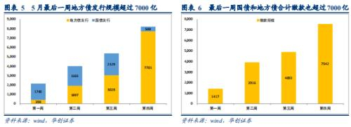 从资金面收紧的原因来看,财政缴款扰动或是主因,但前期极低的资金价格也缺乏继续维持下去的动力。就缴款因素而言,由于前期1万亿新增地方债额度在5月发行完毕,最后一周堆积发行规模较大,单周发行政府债券超过8000亿;以缴款来看,最后一周的缴款规模也超过7000亿,对流动性的短期扰动较大;《从利率走廊视角看超储利率降息——华创债券4月流动性月报》报告中我们曾拆解过央行货币政策工具价格成本和资金面之间的关系,前期降准和自然因素提供无成本资金,带来资金价格的极低水平;但极低的资金利率维持下去需要低成本工具的持续投放,5月缴款因素增多带来短期资金缺口,而逆回购的使用存在“两难”,其一,若逆回购空窗,短期缺口本身即意味着资金价格的上行,还会叠加市场预期的收紧;其二,若逆回购投放,虽可以弥补短期缺口,但2.2%的操作利率大幅高于资金利率水平,央行提供资金边际价格的上升,也将抬升资金价格中枢。所以,我们4月份判断的资金缺口出现导致的资金价格波动,在4月份未出现,但在5月中旬后有所体现。