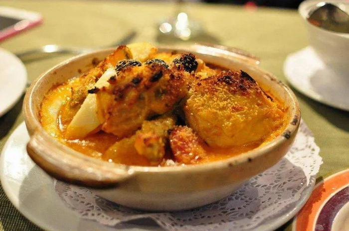 这恰是澳门“葡国菜”的一个缩影。明清年间的澳门因历史的机缘成为中西饮食文化交汇融合之窗。随着历史的变革和中西文化的交流,澳门“土生葡人”的饮食文化日渐偏离葡萄牙本土,逐渐形成了带有明显中西合璧色彩的“澳门葡国菜”。