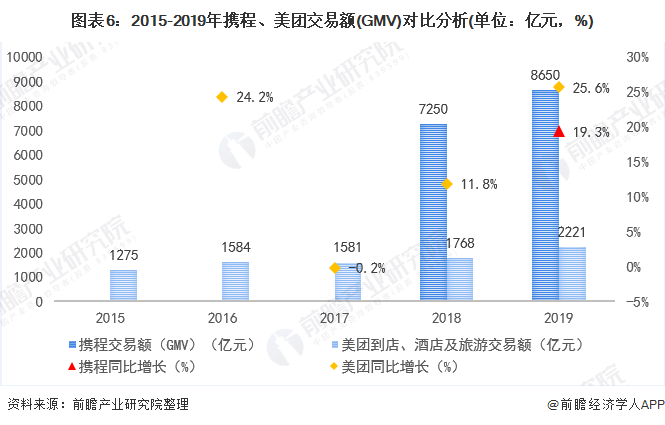 同时结合二者的交易额来看,2019年度携程的总交易额(GMV)达到8650亿元,同比增长19.3%,继续保持全球在线旅游行业第一;而美团到店、酒店及旅游的交易额虽然保持高速增长,但仍与携程有较大差距,仅为2221亿元。