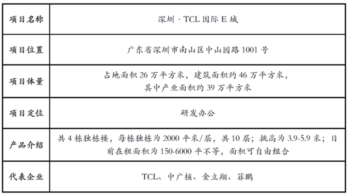 表1-网谷项目代表案例:深圳·TCL国际E城产品介绍
