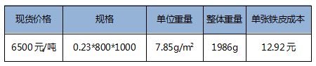 表2:0.23mm宝钢镀锡板成本