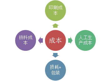 想定制一款“物美价廉”的铁罐产品,并非一件易如反掌的事情,你需要通过“货比三家”的方式,寻求适合自己的铁罐包装。想从一众制罐厂家的突出,马口铁罐必须要做到真正的物美价廉,除了在铁罐质量把关外,更加注意的是“价”。根据笔者对下游终端的调研,以下部分即为马口铁罐目前行业的成本情况。