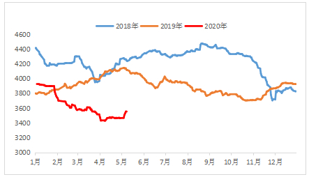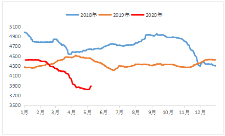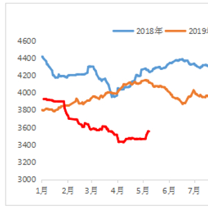热轧基板:截至4月30日,国内3.0mm热轧板卷均价为3471元/吨,较上月下跌44元/吨,较去年同期下跌了660元/吨。进入5月,热轧价格出现反弹,价格上调近100元/吨至3562元/吨,北方部分钢厂马口铁基板TDR-CS材质3.0mm出厂指导基价执行3800元/吨。从今年热轧基板价格走势看,1-4月国内热轧基板累计下跌400元/吨,对于国内非食品级马口铁生产企业来说,热轧基板在其原料成本中占到80%左右;对于食品级生产企业而言,大部分进口基板价格同样有等同幅度下滑。因此,马口铁生产企业原料成本决定其价格走势。