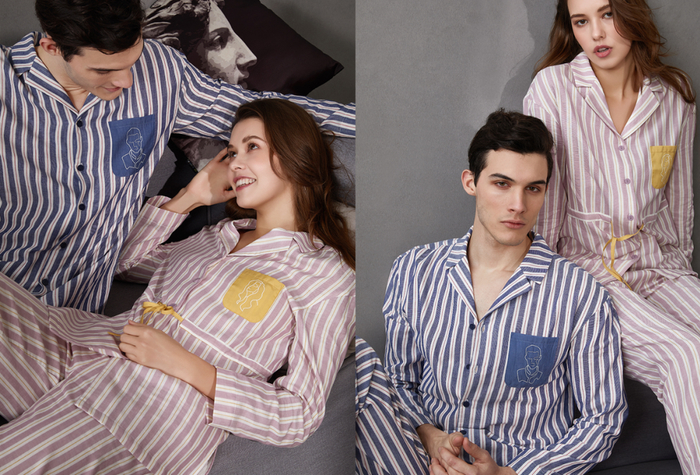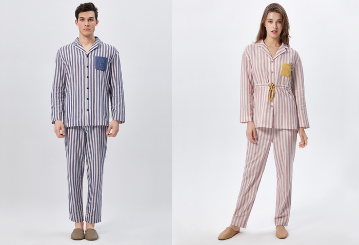 这款来自大朴的条纹家居服套装,厚度适中,特别适合春秋和夏季在空调房里穿着。男款、女款都有,可以买两套与伴侣一起穿。