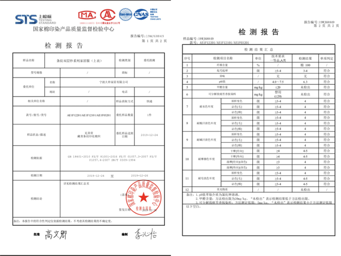 经过检测,这款家居服的达到了国家A类婴幼儿级的安全标准,无甲醛,无荧光增白剂,无致癌芳香胺,你可以放心贴身穿着。