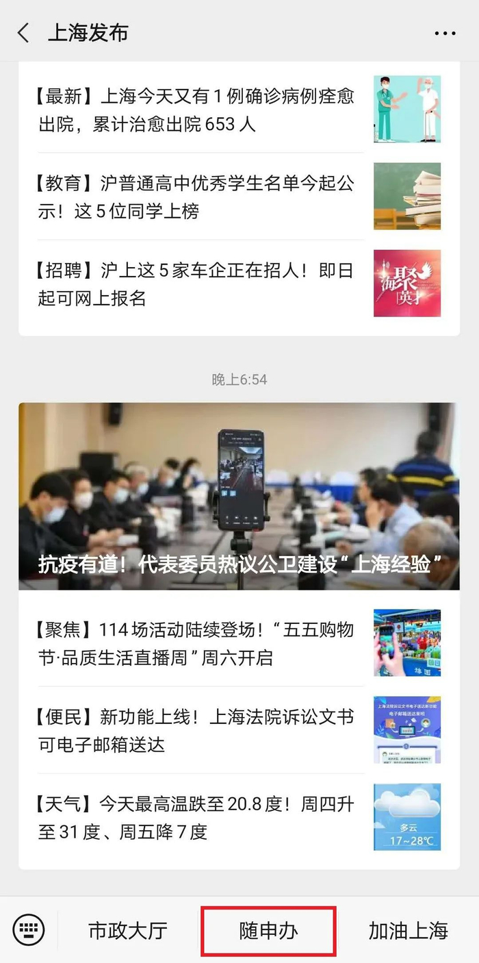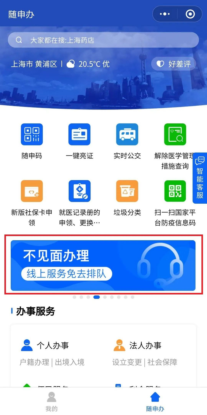 打开“随申办”微信小程序