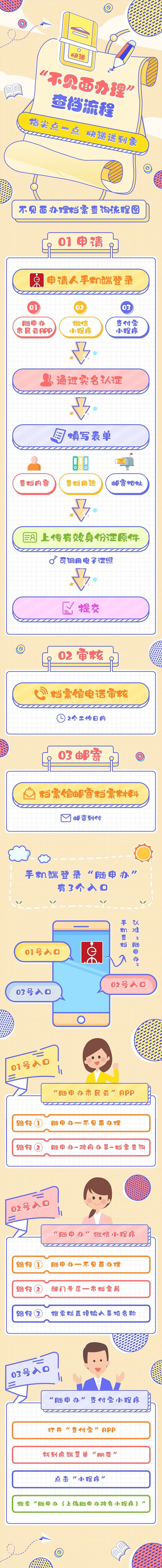 想要查询民生档案的市民朋友请注意啦!市档案局推出民生档案“不见面办理”服务,市民可通过“随申办”APP、“随申办”微信小程序和支付宝小程序,手机在线申请查询婚姻登记、独生子女、人才引进审批、农民建房审批等18类民生档案,足不出户,所需档案材料就能送到您家。具体该如何操作?查询时有哪些注意事项?来看图解和答疑↓