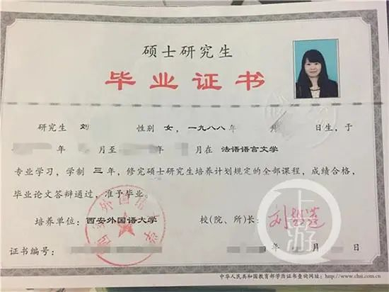 刘双称,其本科和研究生均在西安外国语大学毕业,研究生是法语语言文学专业。受访者供图
