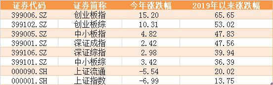 如果从本轮上涨行情2019年年初开始看,上证指数累计涨幅只有13%,继续垫底,上证流通指数累计涨幅为20%,但仍较为明显跑输深圳各大指数。