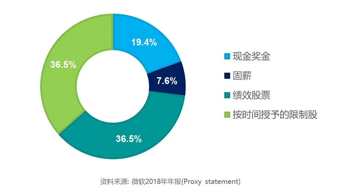 微软并没有采用期权作为激励的主要工具。相对于期权,股权的激励杠杆并不算很强。但从风控角度来看,股权激励诱发的风险行为会远远小于期权。若采用激励杠杆较大的期权,可能会引导高管的过度风险行为。很明显,巨头在转型时摆出了稳健态度。