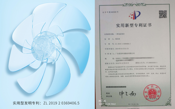 看清楚!是实用专利,技术层面的!不是单纯的多扇叶外观专利,并非噱头。