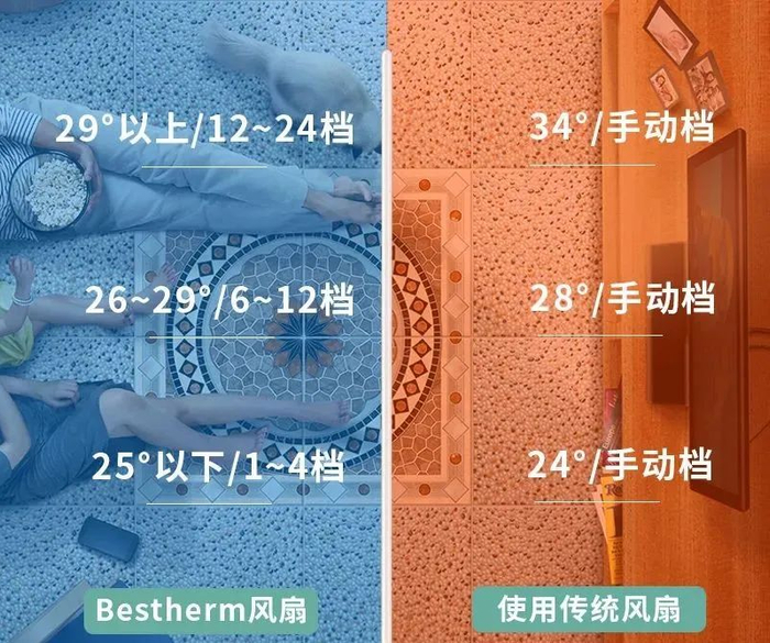 睡觉时开着风扇,下半夜气温降低,它就会自动降低风速,不用担心吹感冒~
