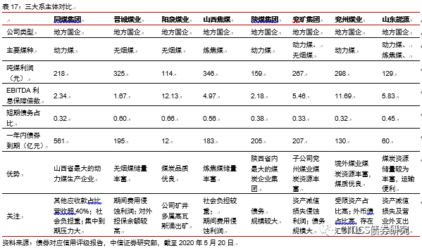 从地域的角度,可以将各省份的煤炭发行人进行粗略划分,例如:山西系、陕西系、山东系、北京系、河北系、河南系、安徽系等。根据债券发行规模及主体资质,接下来将重点讨论集中在山西系、山东系、陕西系的煤炭企业。山西系包括:同煤集团、焦煤集团、晋城煤业集团、晋能集团、潞安集团、阳煤集团、山煤集团等;陕西系包括:陕煤集团等;山东系包括:兖矿集团、山东能源集团等。