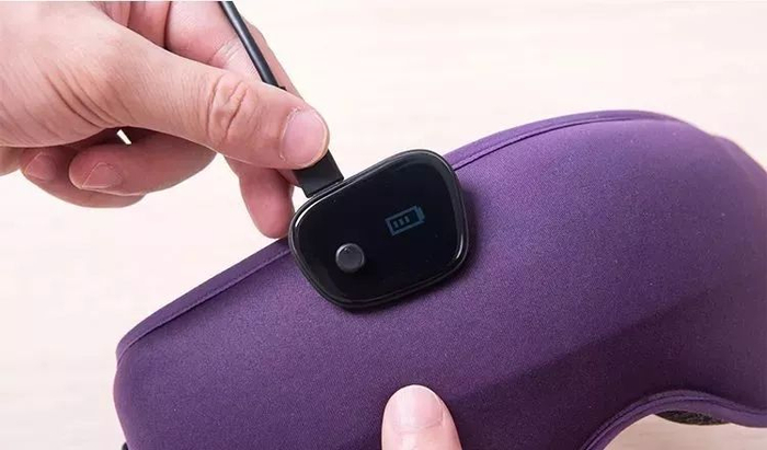 戴上眼罩后,两侧的喇叭正好服帖在耳旁,相当于一副蓝牙耳机。
