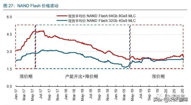 NAND Flash 等存储芯片价格具有周期性,NAND Flash 价格 2018 年初至 2019 年间处 于降价周期。2019 年 NAND Flash 的价格平均跌幅达 46%,行业营运利润持续走低, 主要供应商陷入亏损,资本支出转为保守,产出增长规划亦创下历史新低。