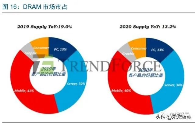 DRAM是半导体市场上占比最大的商品,需求未来在服务器等应用持续扩容下将持续上 行。由于该产品的商品化性质和半导体产业的性质(规模经济高),现在三星电子,SK 海力士和美光科技(MU)三家公司占据着 95%的市场份额。基于 IDC、智能终端、智 能汽车、物联网等领域的需求增长,未来 DRAM 市场将持续增长,据集邦咨询,全球 2020 年内存市场年成长预估为 13.2%,主要原因是三大存储厂商 DRAM 策略趋于保 守: