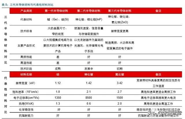 区别于第一代单元素半导体,化合物半导体在电子迁移率、禁带宽度、功耗等指标上表 现更优,具有高频、抗辐射、耐高电压等特性。化合物半导体材料最初的应用主要在 LED 芯片领域,因其材料的性能和参数优势逐步在射频、电力电子等领域崭露头角。