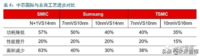 技术持续升级。中芯南方 14nm 已实现量产,目前正在开发更加先进的 N+1 和 N+2 工艺(中芯国际内部代号),其中 N+1 工艺在去年四季度已经完成流片,目前处于 客户产品验证阶段,预计今年四季度风险量产。从 N+1 工艺比 14nm,性能提升 20%,功耗降低 57%,逻辑面积缩小 63%,SoC 面积缩小 55%,除了性能提升幅 度低于 7nm 工艺,功耗和稳定性上都与 7nm 工艺相近。