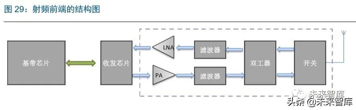 射频前端模块是连接收发芯片和天线的必经之路,是无线终端产品(手机、平板电脑等) 通信系统和无线连接系统(Wi-Fi、GPS、Bluetooth、NFC、FM)的核心组件。射频前 端模块的核心器件包括功率放大器(PA)、低噪声放大器(LNA)、滤波器、射频开关, 目前化合物半导体材料在 PA 和 LNA 中广泛应用。