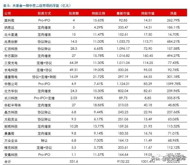 大基金资金加速半导体国产化,账面投资回报可观形成正反馈。大基金主要有两种投资 方式:第一种是直接股权投资,包括定增、转让等,不仅给相关企业提供了资金支持, 还可以一定程度上优化股权结构,提高企业运作效率;第二种是与地方政府资金、社会 资金联动,撬动地方杠杆、社会杠杆。在大基金的资金及资源的双重因素助推下,被投 企业加速发展,大基金账面投资回报也非常可观。