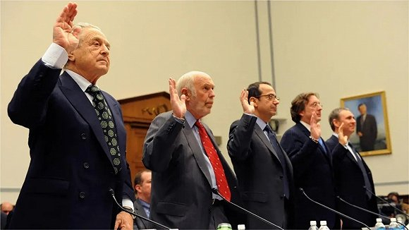 2008年11月,在金融危机的凄风苦雨中,一场听证会在美国众议院召开,五个西装革履的金融大鳄毕恭毕敬,接受政客们的轮番质询。
