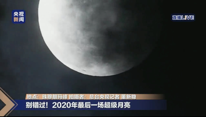 最终,晚上11点多,超级月亮悄悄从云层后面出来了。网友见证了珠峰上的超级月亮,而超级月亮也见证了董新稳耐得住寂寞的坚守。