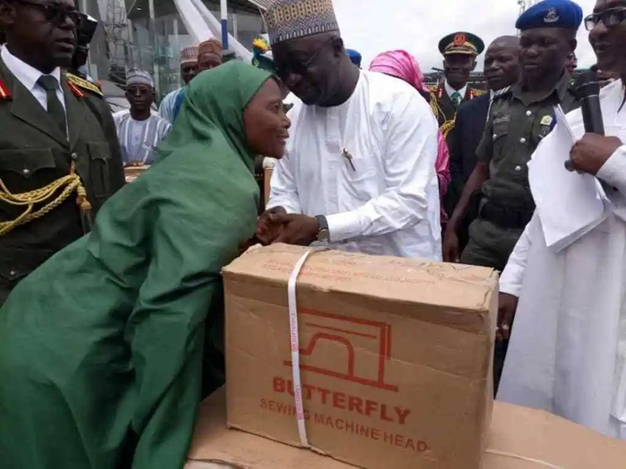 2019年,尼日利亚官员正在向百姓发放“蝴蝶牌”缝纫机