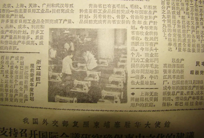 1963年12月19日,《人民日报》刊登一幅名为“上海无敌牌缝纫机收到用户欢迎”的图片消息